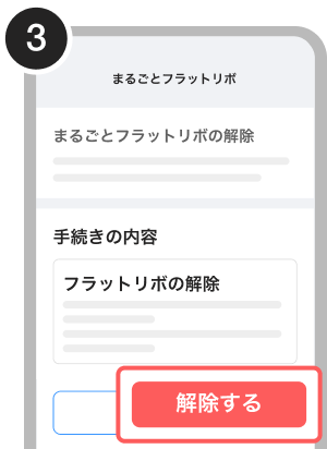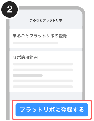 | 「まるごとフラットリボ」をタップ | 注意事項を確認し、「フラットリボに登録する」をタップ |