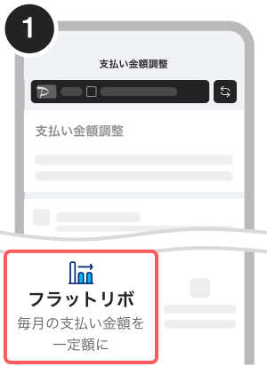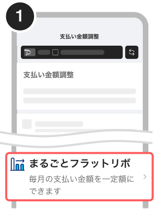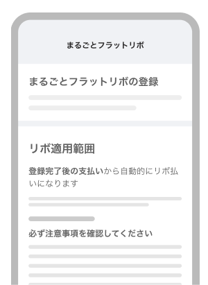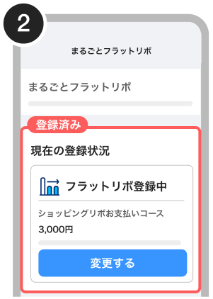 | [まるごとフラットリボ]をタップ | 登録済みの場合:「フラットリボ登録中」と表示 | 未登録の場合:登録画面が表示 |