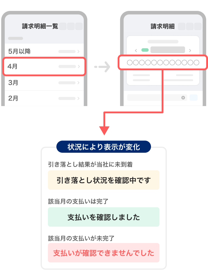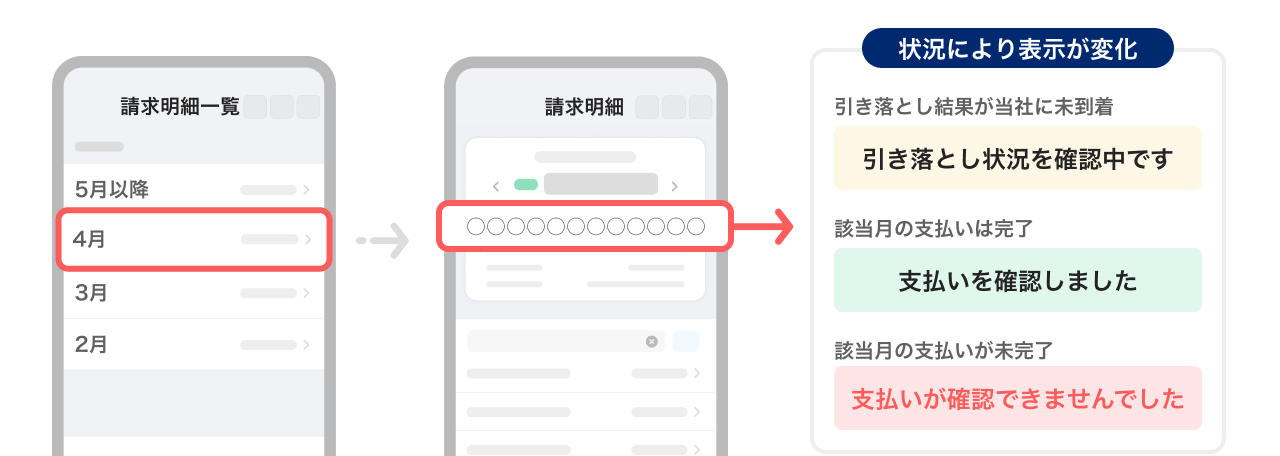 請求明細を開き、お支払い月を選択してご確認ください。以下より請求明細を開くことができます。